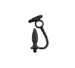 Ass Gasm Silicone Cockring Plug--Black |